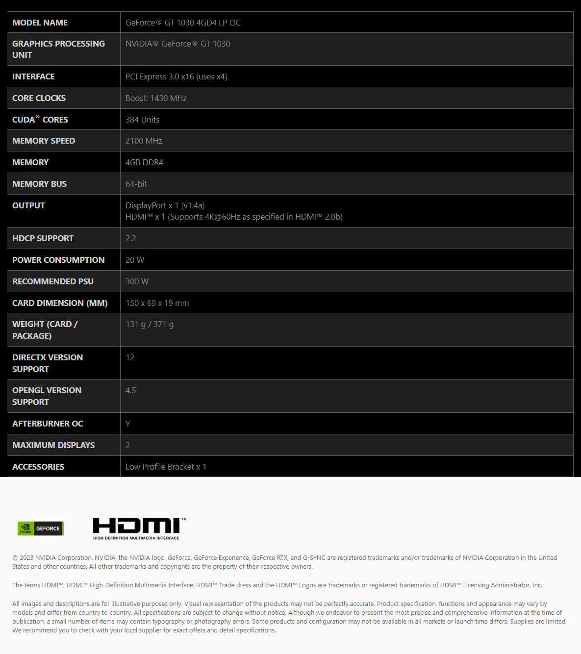 MSI GeForce GT 1030 4GD4 Low Profile OC Graphics Card (GEFORCE GT 1030 4GD4 LP OC)