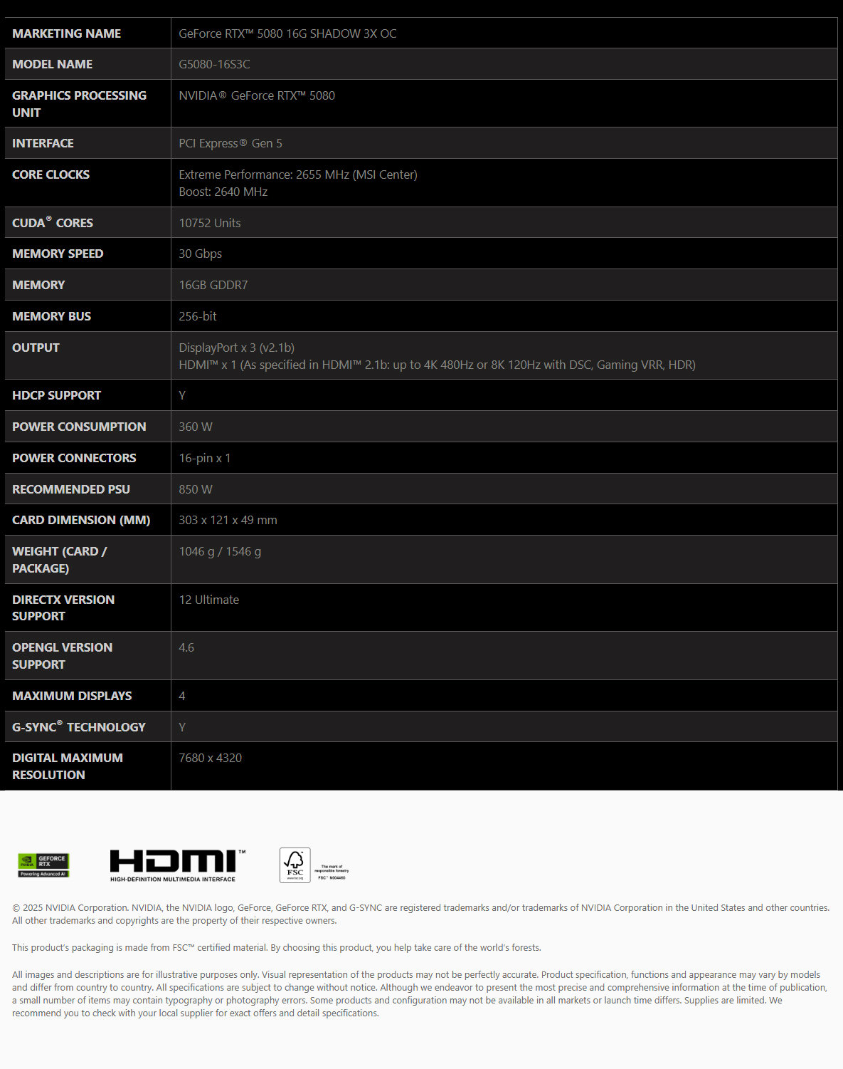 MSI GeForce RTX 5080 16G SHADOW 3X OC